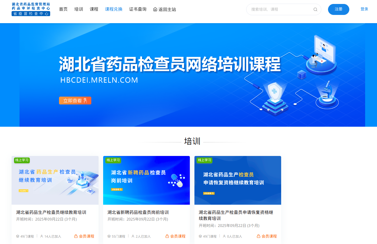 近日,湖北省药品检查员网络培训平台(https://hbcdei.mreln.com/)正式上线运行。该平台的启用是推进药品检查员队伍专业化、规范化、信息化建设的关键举措,将为构建覆盖全生命周期、线上线下融合的药品检查员教育培训体系提供强有力支持。