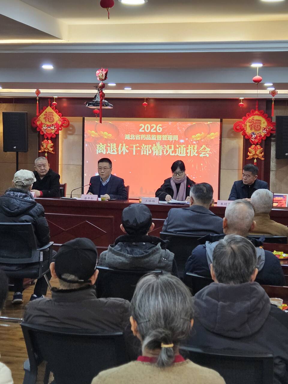潘年松强调,2026年是实施“十五五”规划的启航之年,也是湖北加快建成中部地区崛起重要战略支点的关键之年,需要全系统上下一心、同心同德,也需要老领导、老同志的鼎力支持和深情守望。恳请老同志们一如既往地关心、支持、宣传药监工作,调动各方面积极因素,汇聚成湖北药监的磅礴力量,讲好湖北药监故事,让更多人看到我们守护安全、推动创新的坚定步伐。局党组将认真落实关于加强新时代离退休干部党的建设工作的部署要求,坚持政治上尊重、思想上关心、生活上照顾、精神上关怀,用心用情为老同志解决实际困难,努力让每一位老同志都能安享幸福晚年。
