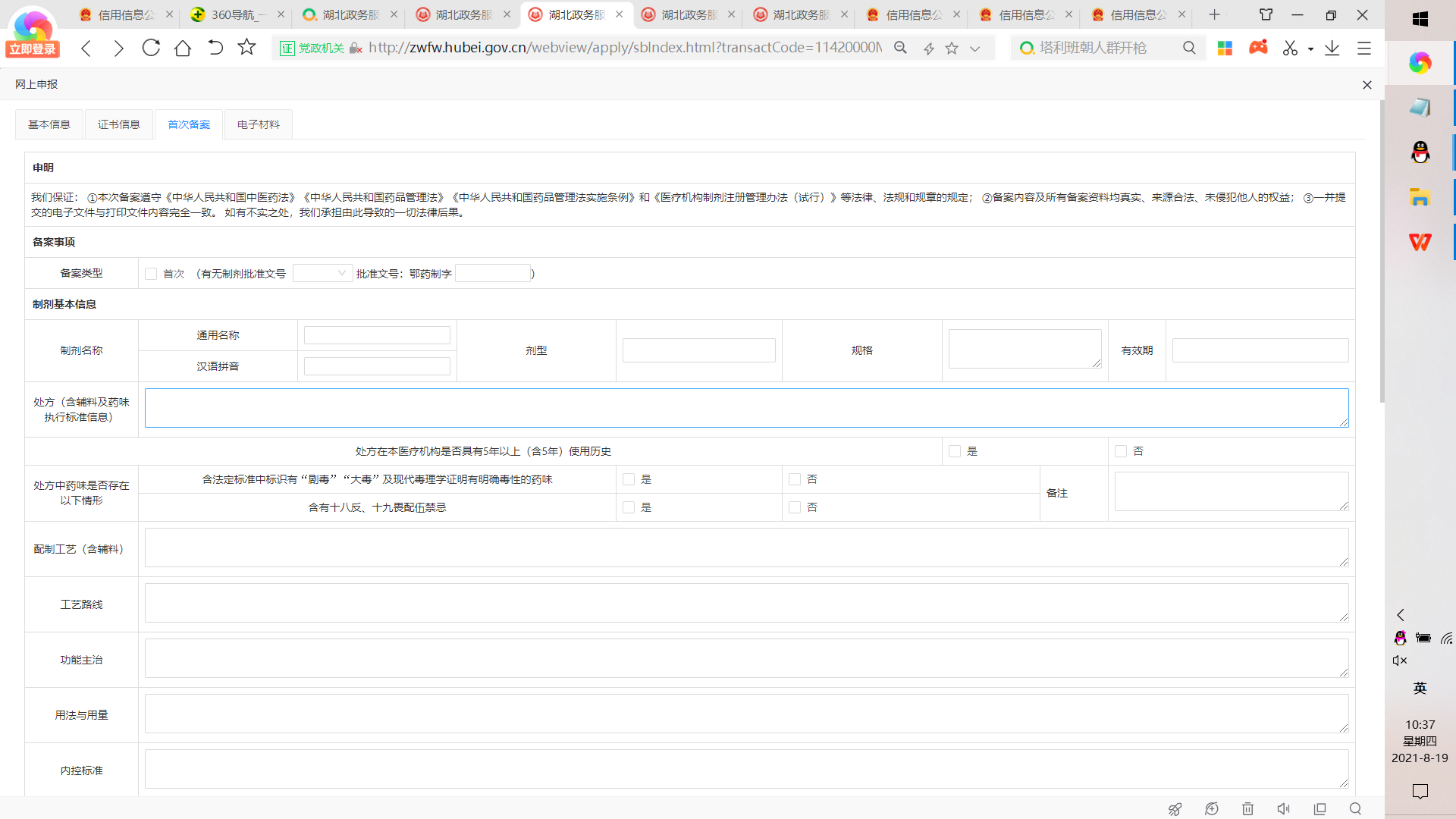 为贯彻落实原国家食品药品监管总局《关于对医疗机构应用传统工艺配制中药制剂实施备案管理的公告》(2018年第19号)和《省人民政府关于加快推进“互联网+政务服务”工作的实施意见》(鄂政发〔2016〕79号)等精神及要求,省局医疗机构应用传统工艺配制中药制剂备案事项网上申报功能已于2021年4月20日正式上线运行。根据《省人民政府关于印发湖北省深化“互联网+政务服务”推进“一网、一门、一次”改革工作方案的通知》(鄂政发〔2018〕29号)的有关要求,现对我省应用传统工艺配制中药制剂备案事项网上申报作出如下调整: