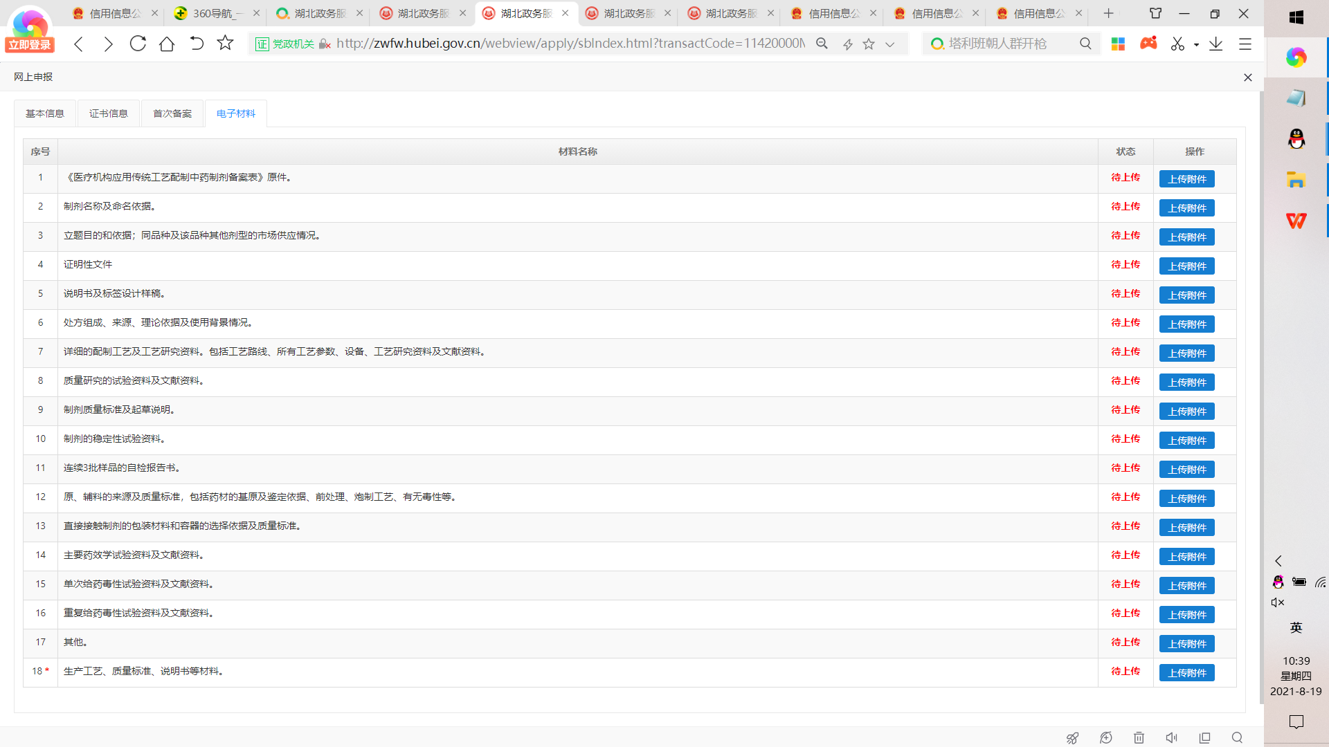13、在“电子材料“这一栏中可以上传企业的申报材料。